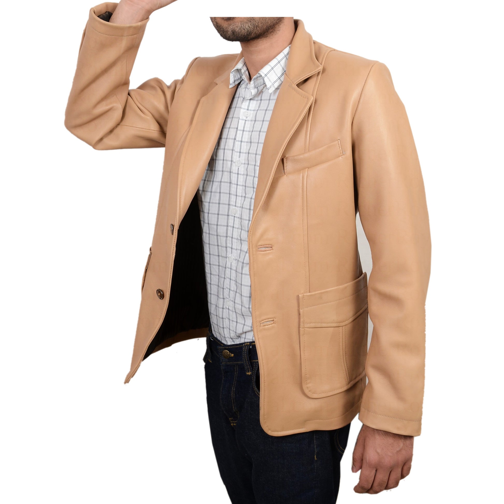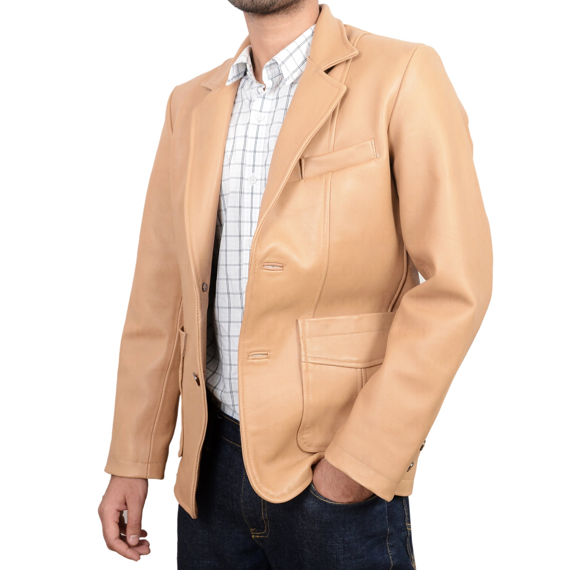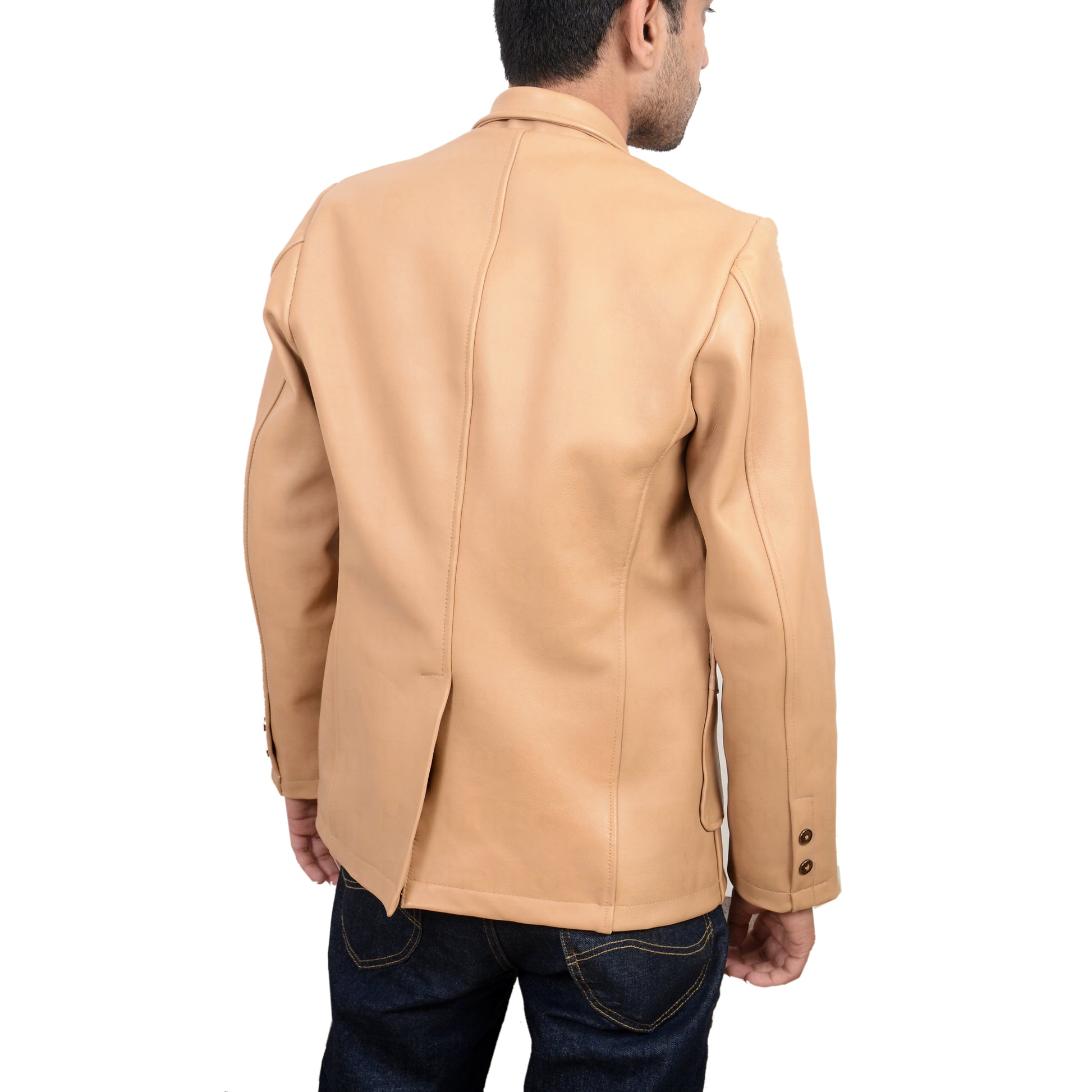This custom fit leather Notched Lapel Jacket/Coat/Blazer from SreeShoes.com is a classic. It is made in premium pure leather and features full sleeves, extra room through the chest and waist for a classic fit, two pockets and one chest pocket with button closure. Perfect to pair it with denim or dress slacks or professional looks.